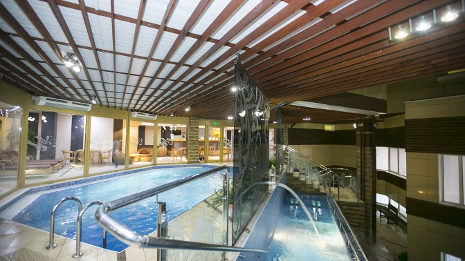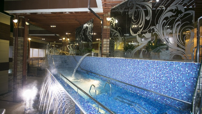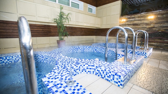 — 3-уровневая аквазона с гидромассажным бассейном, джакузи и ледяным фонтаном расположена на открытом воздухе;